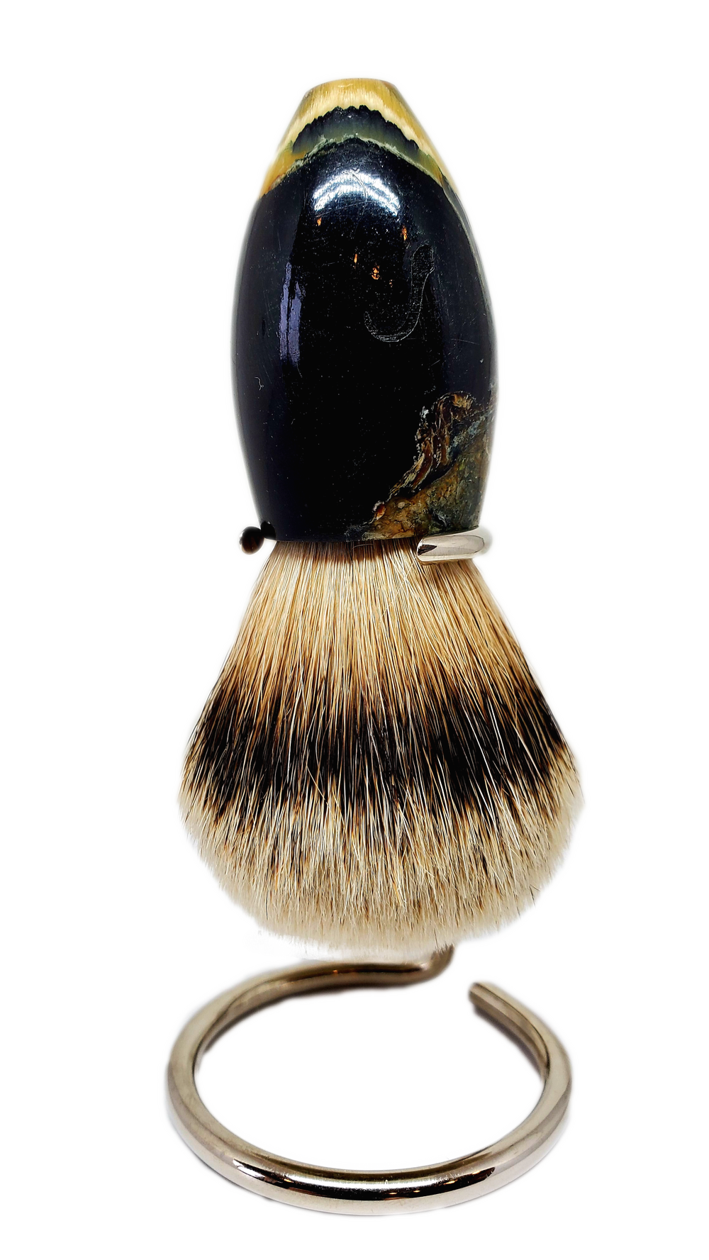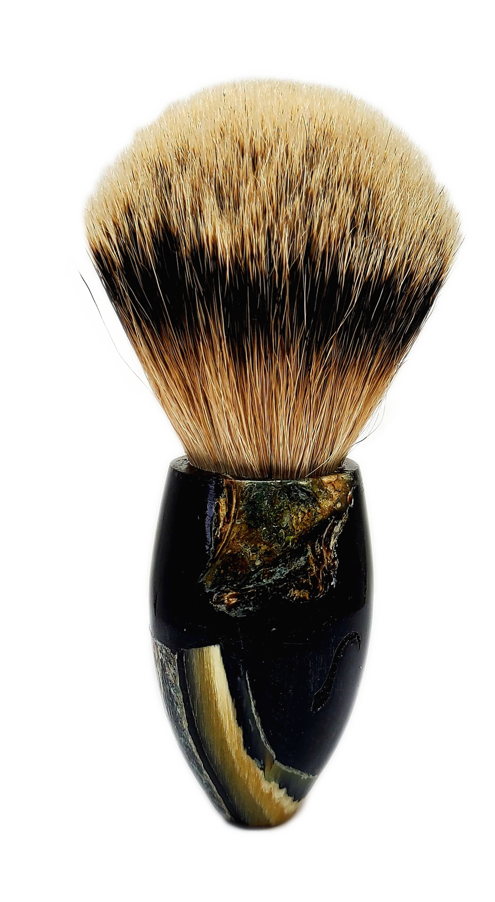 muskox horn set in a deep blue resin, 24.5 high mountain white badger hair knot