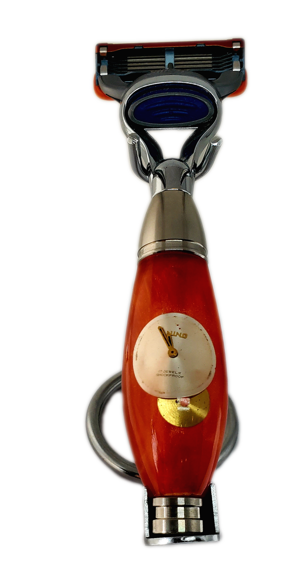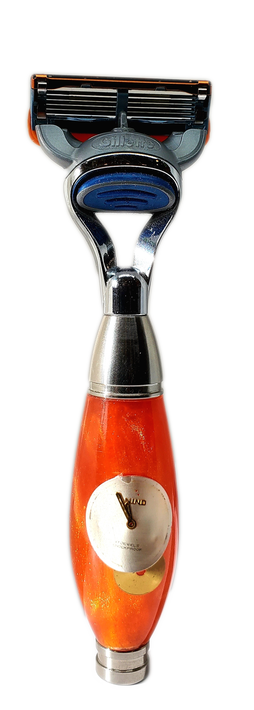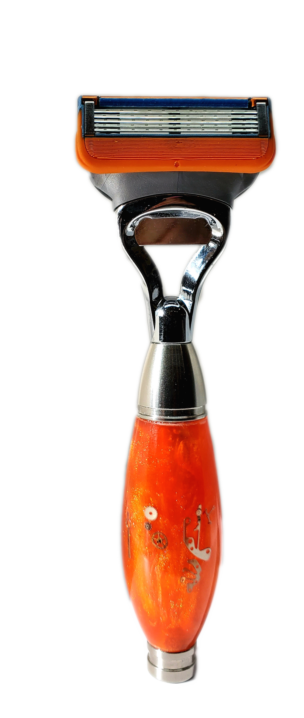 orange resin, , gears and cogs, vintage watch face, stainless steel components