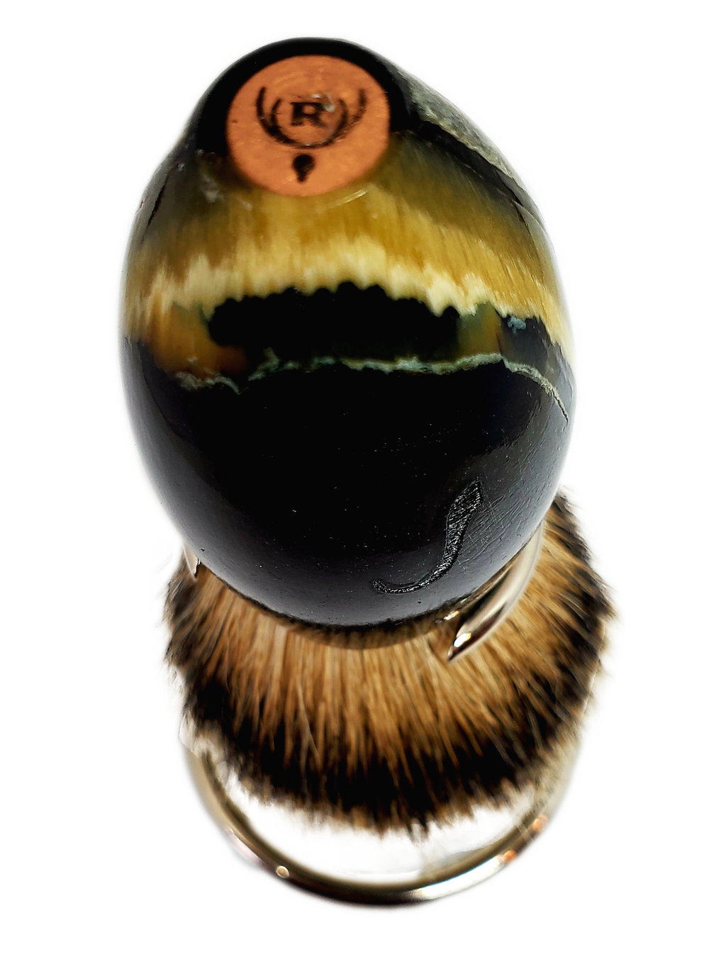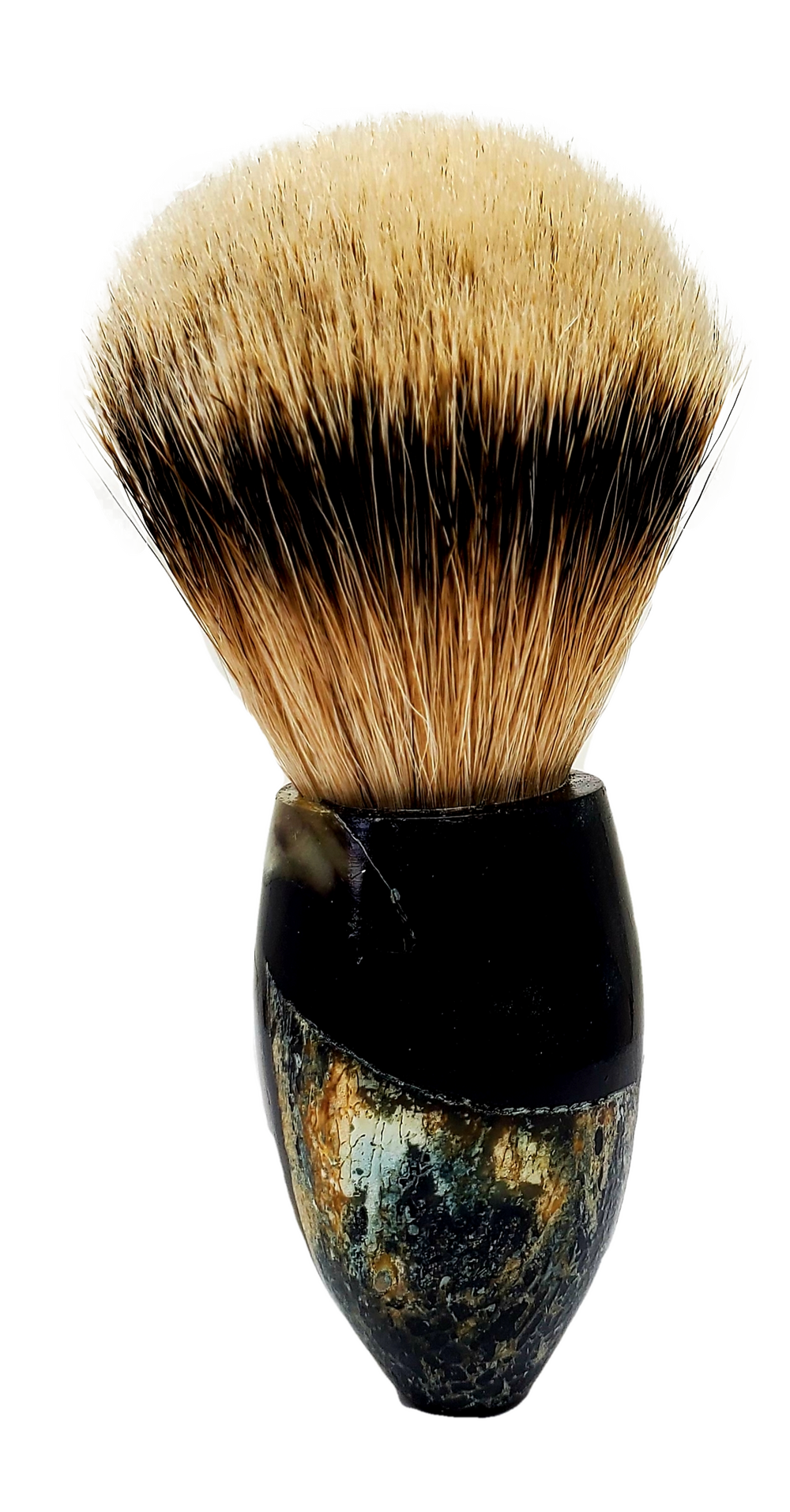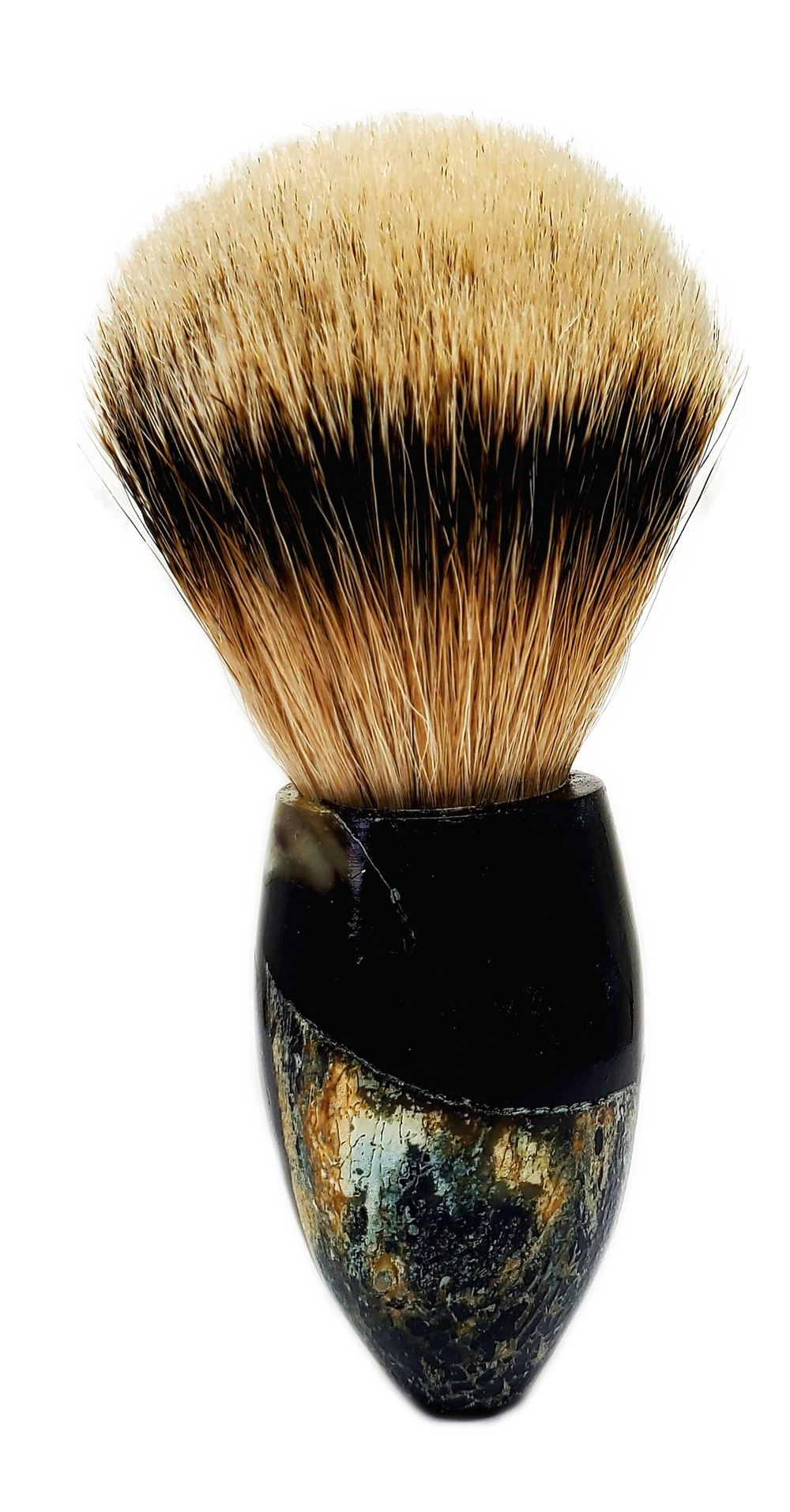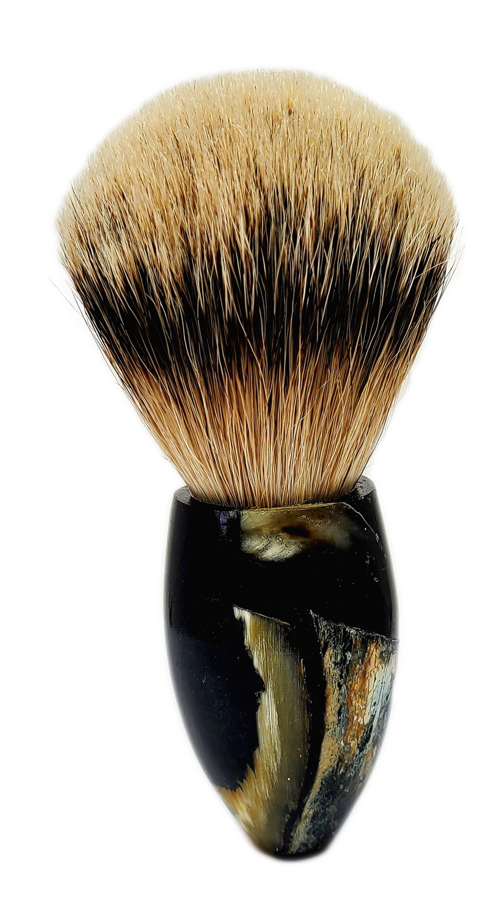 muskox horn set in a deep blue resin, 24.5 high mountain white badger hair knot