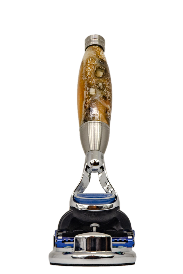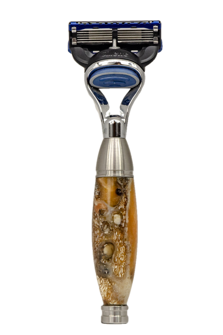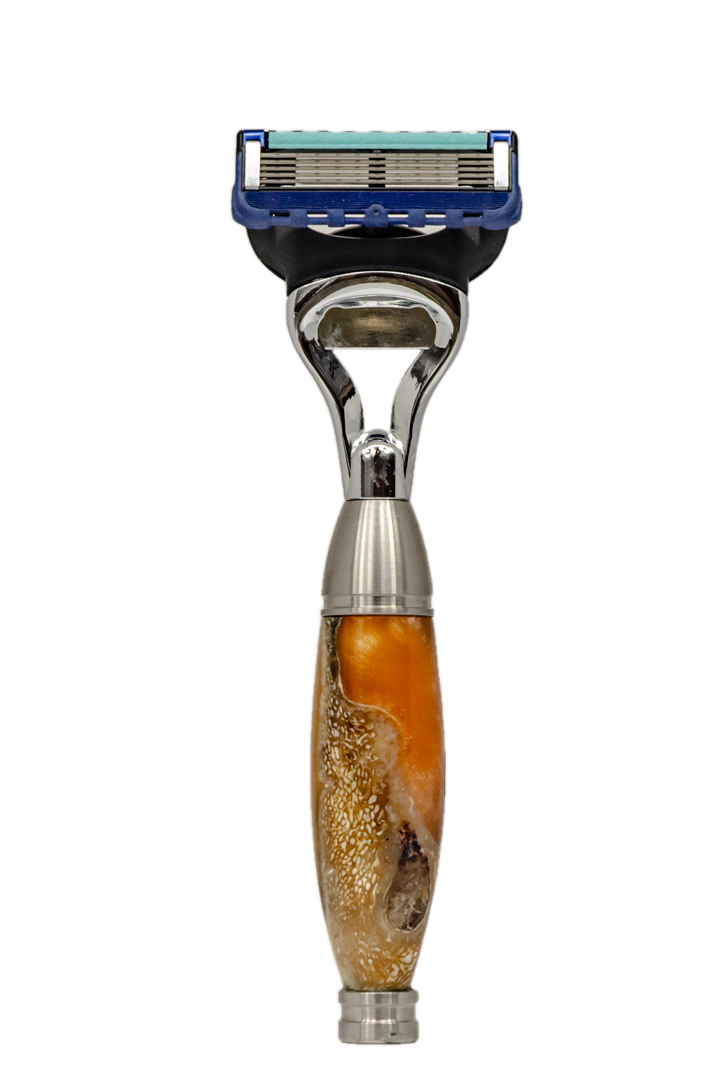This comfortable 5 blade razor (compatible with Gillette Fusion) will support muscle memory in your shaving routine.  The bonus of added beauty to functionality will complete your bathroom ensemble.  Start your wet shaving experience by pairing this razor with a ritual forming brush.